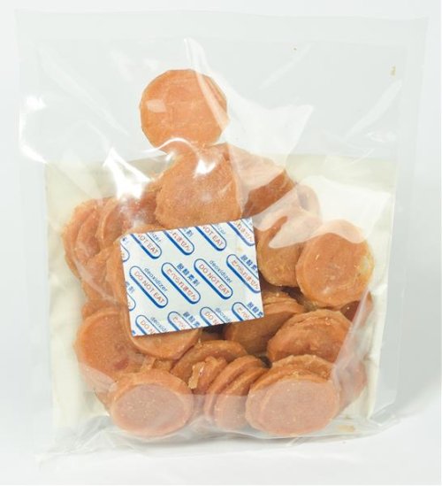 Zloženie: Kuracie mäso 90%, Škrob 6%, Glycerín 3%, Prírodné sladidlo (maltitol) 0,9%, Ocot 0,1%.