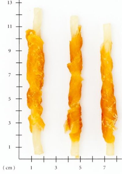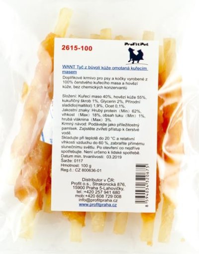 Zloženie: Kuracie mäso 40%, hovädzia koža 55%, kukuričný škrob 1%, glycerín 2%, rastlinný proteín 1,8%, prírodné sladidlo (maltitol) 1,9%, ocot 0,1%