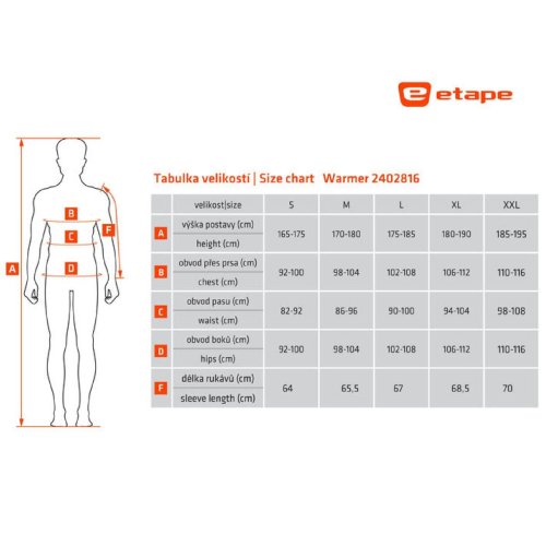 Mikina pre mužov ETAPE WARMER je ideálna ako 2.vrstva na šport aj bežné nosenie, kedy sa vonkajšie teploty pohybujú v rozmedzí od 0 °C do 15 °C. Vďaka použitým technológiám Velvet Soft so zateplením a SuperDryntex vás bude príjemne hriať a zároveň bude funkčne odvádzať pot a vlhkosť od pokožky pri športových aktivitách. Mikina má klasický dlhý zips, 3 predné vrecká na zips a dlhšie zipsy pre ľahšiu manipuláciu. Velvet Soft – syntetický termoizolačný materiál, ktorý sa výborne hodí ako 2.vrstva. Materiál je veľmi príjemný na dotyk a poskytuje vysokú hrejivosť. Vďaka vysokému chlpu tvorí zároveň izolačnú vrstvu zo zachyteného vzduchu a zabraňuje tak nechcenému ochladzovaniu tela. SuperDryntex - funkčný elastický materiál z polyesterových mikrovlákien, ktorý veľmi rýchlo schne, odvádza pot a vlhkosť od pokožky. Pre svoju antibakteriálnu úpravu a odolnosť proti škvrnám sa veľmi ľahko udržuje. Odlišné gramáže tohto materiálu ponúkajú rôzne termoizolačné vlastnosti. - materiál: 100% polyester - prať na 30 ° C, nebieliť, nežehliť, nečistiť chemicky, nepoužívať aviváž Veľkostná tabuľka v obrázkoch. Uvedené hodnoty sú iba orientačné, vhodná veľkosť sa môže líšiť podľa konkrétnej postavy.