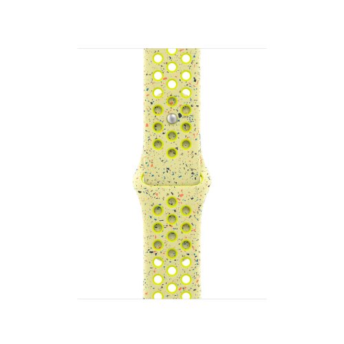 Tento športový remienok Nike má vylisované otvory pre väčšiu vzdušnosť, je odolný, pevný a pritom prekvapivo poddajný. Obsahuje farebné vločky, ktoré tvoria náhodné vzory, takže každý remienok je originál. Jeho hladký, hutný materiál sa elegantne ovinie okolo zápästia a príjemne sedí. A zapína sa na hliníkový kolíček s matným povrchom, do ktorého je starostlivo vygravírované logo Nike Run.
