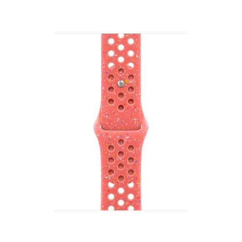 Tento športový remienok Nike má vylisované otvory pre väčšiu vzdušnosť, je odolný, pevný a pritom krásne poddajný. Obsahuje farebné vločky vytvárajúce náhodné vzory, takže každý remienok je originál. Jeho hladký, hutný materiál sa elegantne ovinie okolo zápästia a príjemne sedí. A novo sa zapína na hliníkový kolíček s matným povrchom.