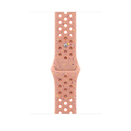 Tento športový remienok Nike má vylisované otvory pre väčšiu vzdušnosť, je odolný, pevný a pritom prekvapivo poddajný. Obsahuje farebné vločky, ktoré tvoria náhodné vzory, takže každý remienok je originál. Jeho hladký, hutný materiál sa elegantne ovinie okolo zápästia a príjemne sedí. A zapína sa na hliníkový kolíček s matným povrchom, do ktorého je starostlivo vygravírované logo Nike Run.