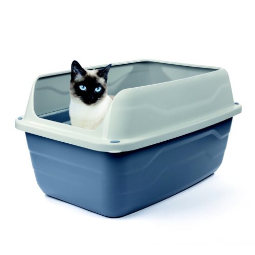 Otvorené, priestranné wc pre mačky s extra vysokým okrajom z kvalitného odolného plastu.