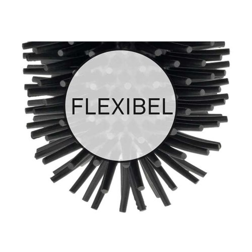 Náhradná kefa La Brosse k WC setu: Náhradná WC kefa so svetlo šedou hlavicou kefky La Brosse Flexible (so silikónovými štetinami) má dĺžku 42,5 cm a priemer 8 cm. Rukoväť je vyrobená z plastu a má aj svetlo šedú farbu. TPR kefa PP plastová rukoväť svetlo šedá 8cm, 42,5cm