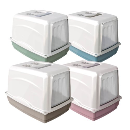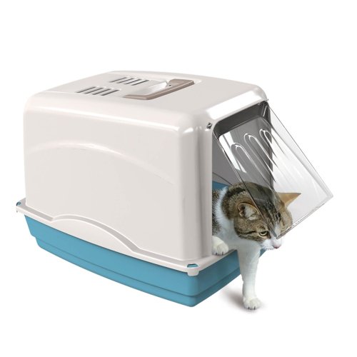 Uzavreté, priestranné wc pre mačky s extra veľkými dvierkami z kvalitného odolného plastu.