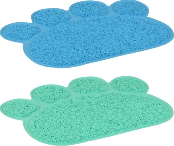 Krásna predložka pred mačaciu toaletku alebo pod misky s jedlom. Dizajn zvieracej labky s veselým farebným prevedením skrášli a pomôže udržať váš domov čistejší. Rozmery: 40 x 30 cm. Farba: Zelená a modrá.