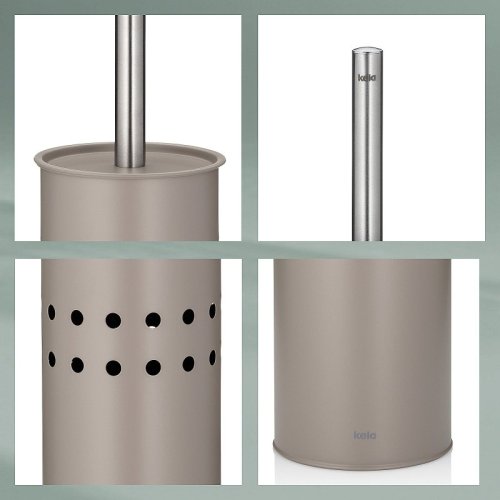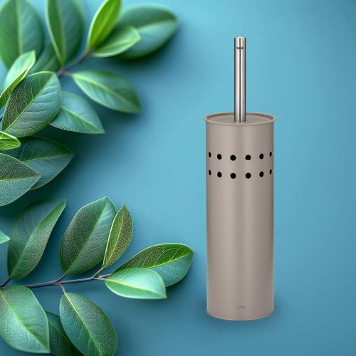 Uzavretá toaletná súprava Leo je vyrobená z kovu s práškovým nástrekom a zdobená perforovaným vzorom po celom obvode. Rukoväť toaletnej štetky je z nerezovej ocele a je možné ju v prípade potreby vymeniť rovnako ako hlavicu štetky. Vnútorná plastová nádoba zachytáva odkvapkávajúcu vodu a je možné ju ľahko vybrať pre vyprázdnenie a čistenie.