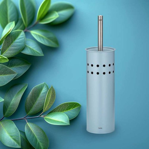 Uzavretá toaletná súprava Leo je vyrobená z kovu s práškovým nástrekom a zdobená perforovaným vzorom po celom obvode. Rukoväť toaletnej štetky je z nerezovej ocele a je možné ju v prípade potreby vymeniť rovnako ako hlavicu štetky. Vnútorná plastová nádoba zachytáva odkvapkávajúcu vodu a je možné ju ľahko vybrať pre vyprázdnenie a čistenie.