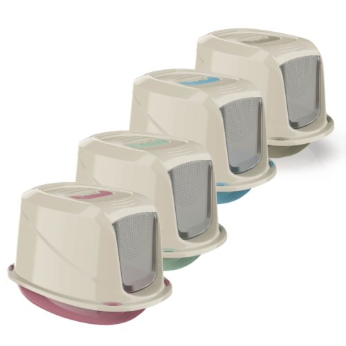 Uzavreté, veľmi priestranné wc pre mačky s dvierkami z kvalitného odolného plastu.