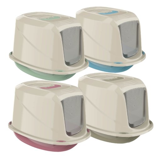 Uzavreté, priestranné wc pre mačky s dvierkami z kvalitného odolného plastu.