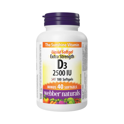 Vitamín D3 (cholekalciferol) 62,5 mcg (2500 IU) (1250 % RHP) RHP - referenčná hodnota príjmu (predtým odporúčaná denná dávka) IU - medzinárodná jednotka vyjadrujúca obsah účinnej látky Zloženie: V jednej kapsule: vitamín D3 (cholekalciferol) 62, 5 µg (2500 IU) (1250 % RHP), RHP = referenčná hodnota príjmu Prídavné látky a ďalšie zložky: softgelová kapsula (želatína, zvlhčujúca látka: glycerol, čistená voda), organický ľanový olej Upozornenie: Skladujte v suchu pri teplote do 25 ° C, starostlivo uzavreté, chráňte pred priamym slnečným žiarením a pred mrazom. Uchovávajte mimo dosahu detí. Prípravok nie je určený pre deti. Výrobca neručí za škody vzniknuté nevhodným použitím alebo skladovaním. Výrobok nie je určený ako náhrada pestrej stravy a zdravého životného štýlu. Neprekračujte dennú odporúčanú dávku. Spotrebujte do dátumu uvedeného na obale.