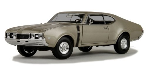 Welly - Oldsmobile (1968) model 1:34 zlaté Auto v mierke 1:34 vyrobené z kovových a plastových dielov. Balené v papierovej krabičke s fóliovým priehľadom. Otváracie dvere. Priskrutkované na papierovom podstavci s popisom typu. Dĺžka autíčka 12 cm