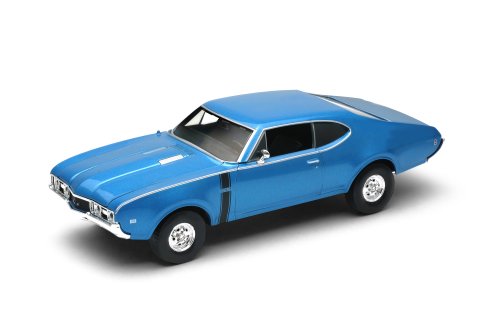 Welly - Oldsmobile 442 (1968) model 1:34 modré Auto v mierke 1:34 vyrobené z kovových a plastových dielov. Balené v papierovej krabičke s fóliovým priehľadom. Otváracie dvere. Priskrutkované na papierovom podstavci s popisom typu. Dĺžka autíčka 11 cm