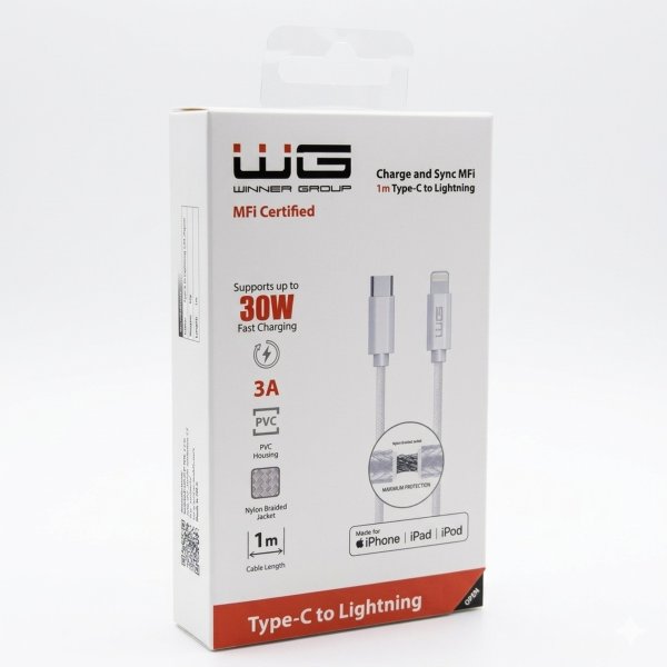 Prémiový WG Dátový kábel s certifikáciou MFi (Made for iPhone/iPad/iPod) umožňuje súbežný prenos dát a rýchle dobíjanie batérie zariadenia so slotom Lightning.