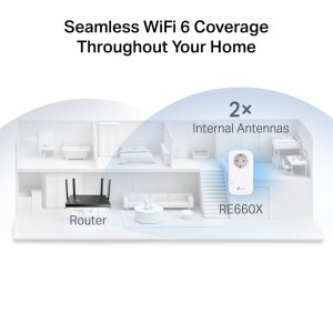 TP-Link RE660X je výkonný WiFi 6 extender s rýchlosťou až AX1800 , ktorý rozšíri pokrytie vašej bezdrôtovej siete do všetkých kútov domácnosti. Vďaka dvojpásmovej prevádzke 1201 Mb/s (5 GHz) a 574 Mb/s (2,4 GHz) , technológii EasyMesh a inteligentnému roamingu zaistí stabilné a plynulé pripojenie bez výpadkov pri pohybe medzi miestnosťami.