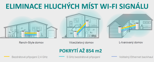 Tento balíček Deco M4 poskytuje Wi-Fi na ploche až 854 štvorcových metrov