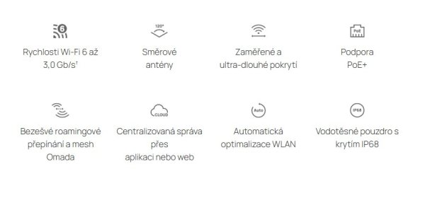 TP-Link EAP650 D 120-Outdoor je výkonný vonkajší access point s Wi-Fi 6 , ktorý zvládne viac ako 250 klientov súčasne . S pokročilými funkciami ako je MU-MIMO, Beamforming a Omada Mesh zaisťuje stabilné pripojenie aj na veľkých plochách s náročnou prevádzkou.