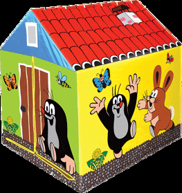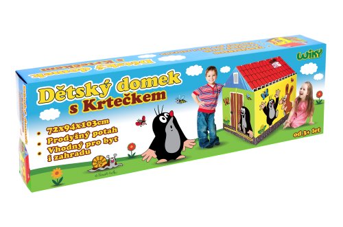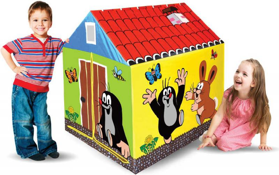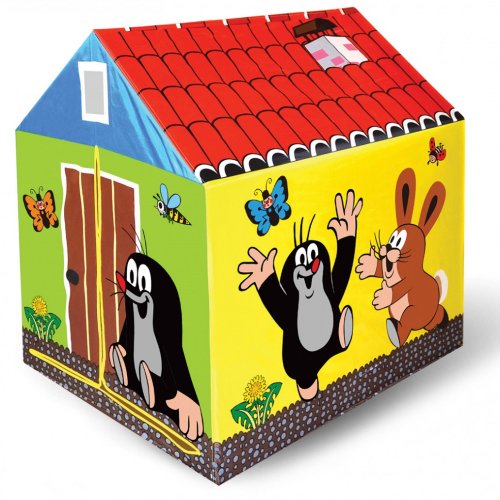 Detský domček s motívom obľúbeného hrdinu Krtka a jeho kamarátov. Domček môžu mať deti postavený v letných mesiacoch nielen na záhrade, ale môže zdobiť aj detskú izbu. Do domčeka sa zmestia až dve deti. Je vyrobený z vanilového materiálu s plastovou konštrukciou. Rozmer 95x72x102 cm. Vhodné od 3 rokov.