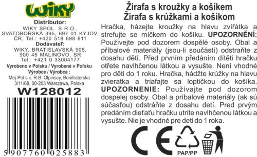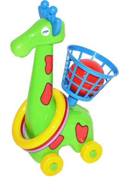 Žirafa hádzacia na kolieskach s krúžkami a košíkom