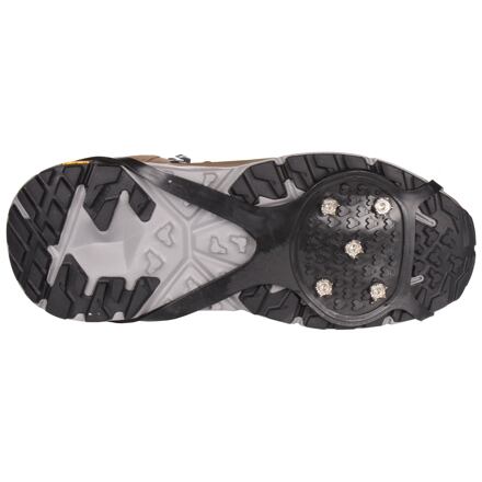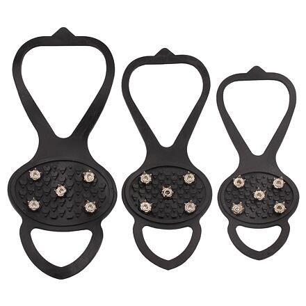 Skladné a ľahké protišmykové návleky nazývané aj nesmeky vás ochránia pred rizikom pošmyknutia na namrznutom povrchu, snehu alebo vlhkom trávnatom povrchu. Návleky Winter Steps vyrobené zo špeciálnej odolnej a pružnej gumy ľahko nasadíte na akýkoľvek typ športovej alebo outdoorovej obuvi. Ochranu pred pošmyknutím zabezpečuje 5 pevných oceľových hrotov v prednej časti chodidla. Veľkosti: S: Pre veľkosť obuvi EU 24-34, celková dĺžka 20 cm, šírka v hornej časti chodidla 8 cm M: Pre veľkosť obuvi EU 35-41, celková dĺžka 24 cm, šírka v hornej časti chodidla 9 cm L: Pre veľkosť obuvi EU 42-46, celková dĺžka 27 cm, šírka v hornej časti chodidla 11 cm Hmotnosť 1 páru: 80 g (S), 100 g (M), 124 g (L) Materiál: guma, oceľ