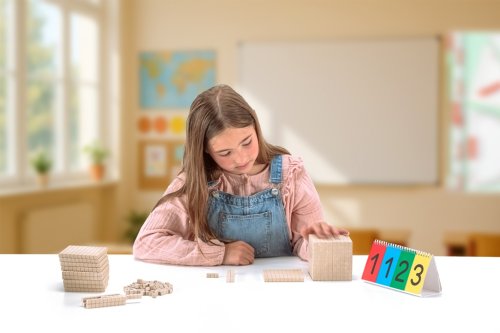 Dienesova základná sada pre názorné vyučovanie matematiky pomáha deťom pochopiť princípy desiatkovej sústavy, vzťahy medzi jednotkami, desiatkami, stovkami a tisícom. Manipuláciou s kockami si žiaci osvojujú číselné štruktúry, rozvíjajú porozumenie miestnej hodnote číslic a učia sa prevádzať medzi rôznymi číselnými zápismi. Pomôcka je vhodná pre skupinovú aj individuálnu prácu, podporuje porovnávanie objemov aj základnú priestorovú predstavivosť. Dienes je pomenovanie didaktických pomôcok a metodiky pre výučbu matematiky vyvinutých Zoltánom P. Dienesom. Dienesove bloky sú súbory kociek, tyčiek a doštičiek rôznych veľkostí a farieb, ktoré predstavujú jednotky, desiatky, stovky a tisíce. Tieto pomôcky slúžia k názornému učeniu základných matematických konceptov, najmä desiatkovej sústavy, počítaniu, sčítaniu, odčítaniu a pochopeniu miesta číslic v čísle. Vyrobené z ekologického a odolného materiálu RE-Wood® v prírodnej farbe. Zabalené v kartónovej krabičke s návodom. Obsah balenia: 100 jednotlivých kociek10 desiatkových tyčiek10 stovkových dosiek1 kocka tisícenávod Hlavné vlastnosti: zvýrazňuje štruktúru čísel a desiatkového systémupracuje s jednotkami, desiatkami, stovkami a tisícomrozvíja porozumenie miestnej hodnote číslicpodporuje porovnávanie objemov a budovanie teleshodnej pre individuálnu i skupinovú prácu vyrobené v Nemeckuvhodné pre deti od 6 rokov