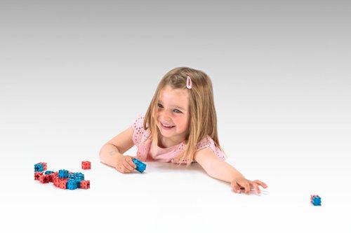 Kocky v červenej a modrej farbe sú univerzálna didaktická pomôcka pre deti od predškolského veku. Vďaka možnosti spájania zo všetkých strán aj s posunom sú ideálne na stavbu priestorových modelov, nácvik jemnej motoriky i základných početných úkonov. Vďaka ich veľkosti sa s nimi pohodlne manipuluje a ľahko sa používajú aj pri meraní, vážení a porovnávaní. Vyrobené z pevného 100% recyklovaného dreva s certifikáciou PEFC, ktoré je po použití opakovane recyklovateľné. Zabalené v kartónovej krabičke s návodom. Hlavné vlastnosti: 50 modrých a 50 červených kociek trénuje stavbu 3D tvarov a geometrických teles rozvíja jemnú motoriku pri spájaní kociek podporuje predstavivosť a tvorivotučie sčítanie, odčítanie, násobenie a delenie pomáha porovnávať dĺžky a hmotnosti rozvíja triedenie. predlohyvyrobené zo 100% recyklovaného dreva s certifikáciou PEFCvyrobené v Nemecku