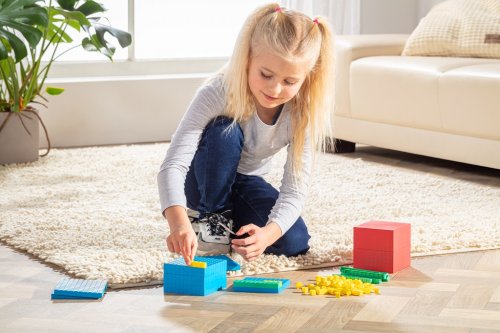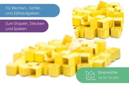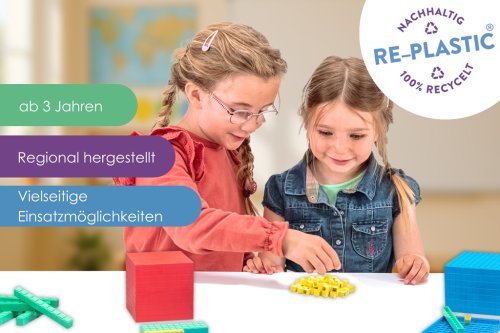 Táto sada so 121 dielikmi vyrobenými z udržateľného RE-plastu pomáha deťom od 6 rokov hravou formou porozumieť číslam. Podporuje rozpoznávanie štruktúr a sebavedomé používanie číselných hodnôt, najmä pri učení matematiky. Ideálne pre základné školy na posilnenie aritmetických zručností, ako je porovnávanie objemov. Nepostrádateľná aritmetická pomôcka pre každého, kto si chce zlepšiť svoje matematické zručnosti. Sada obsahuje 100 žltých kociek jednotiek, 10 zelených tyčiniek desiatok, 10 modrých štvorcov stoviek a 1 červenú kocku tisícku, ktorá nie je skladacia ale pevná. Hlavné vlastnosti: obsahuje 100 dielov10 fariebprvé hravé skúsenosti s matematikourozpoznávania tvarov a fariebtréning pamäťových zručnostívyrobené v Nemecku