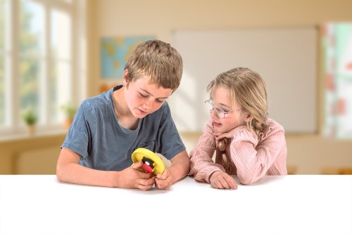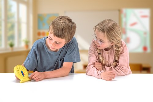 Deti majú možnosť zapojiť vlastné skúsenosti k téme času a hodín. Učia sa pomenovávať čísla na ciferníku aj jednotlivé ručičky (hodinovú a minútovú) a porozumieť princípu 24hodinového dňa, kedy sa každá hodina opakuje dvakrát – dopoludnia a popoludní. Osvojujú si aj prepojenie denných čias s bežnými činnosťami (napr. ráno – raňajky). Dôraz je kladený na rozlíšenie medzi konkrétnym časovým bodom a časovým úsekom. Deti sa učia určovať jednoduché časové úseky na základe počiatočného a koncového času, nastavovať ručičky hodín a ukazovať celé, pol a štvrť hodiny. Zároveň si precvičujú rôzne spôsoby zápisu a čítania času s využitím vystúpeného ciferníka a nastaviteľných, synchronizovaných ručičiek. Ďalšími schopnosťami je prevádzanie časových údajov medzi rôznymi jednotkami, zápis časových hodnôt, používanie meracích údajov a štandardizovaných jednotiek. Žiaci sa učia rozpoznávať a riešiť slovné úlohy s časovými údajmi a pristupovať k nim podľa svojej individuálnej úrovne a schopností. Vyrobené zo 100% recyklovaného plastu, ktorý je po použití opakovane recyklovateľný. Zabalené v uzatvárateľnom papierovom sáčku s certifikáciou FSC. Hlavné vlastnosti: zapojenie vlastných skúseností s vnímaním času pomenovania ručičiek a číslic na ciferníku prepojenie denných dôb s bežnými činnosťami rozlíšenia časového bodu a časového úseku unastavovania celých, pol a štvrť hodinčítania a zápis času rôznymi spôsobmi prevody medzi časovými jednotkami riešenie slovných úloh s časom prispôsobenie úrovni dieťaťa