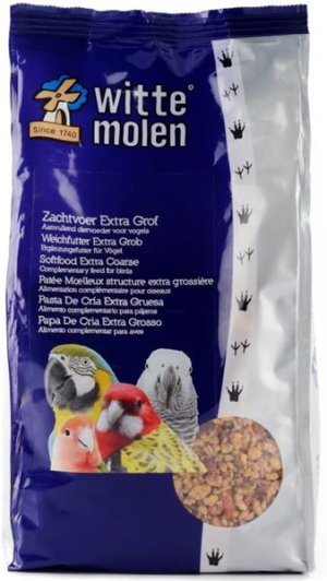 Vaječné krmivá Witte Molen sú ideálnym doplnkovým krmivom pre výbornú trvalú kondíciu vtákov. WitteMolen Softfood Extra coarse obsahuje zložky potrebné pre správny rast mladých vtákov, pre zvýšené nároky dospelých vtákov v období rozmnožovania a taktiež v období preperovania. Krmivo je pripravené na priame použitie. Vaječinu WitteMolen Softfood Extra coarse s ovocím a orechmi môžete používať aj v kombinácii a ďalšími vaječnými krmivami. Vaječiny je vhodné používať v priebehu celého roka na dlhodobú dobrú kondíciu vtákov.