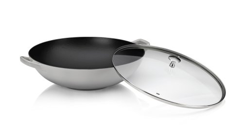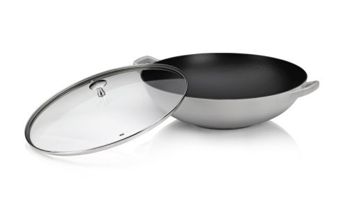 Trendy riadu s dlhou životnosťou zo série Kela Calido: Veľký wok s priemerom 36 cm a zvonku lesklým povrchom bude vašim novým spoľahlivým spoločníkom v kuchyni, keď ide o zdravú a šetrnú prípravu vašich pokrmov. Tento šedý wok je vyrobený z liatiny a má vo vnútri čierny a hrubý smalt. Wok je možné používať až do 220 ° C a je vhodný na všetky typy sporákov. Wok so sklenenou pokrievkou je súčasťou rozsiahlej série riadu Calido by Kela! Smaltovaná liatina so sklenenou pokrievkou svetlo šedá / čierna 36cm, 17cm v, 4L
