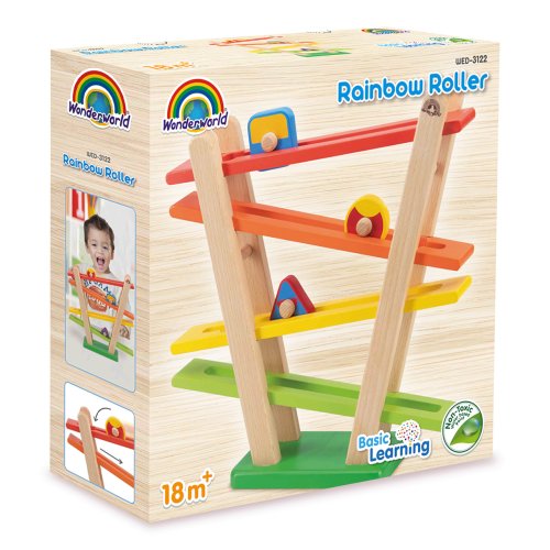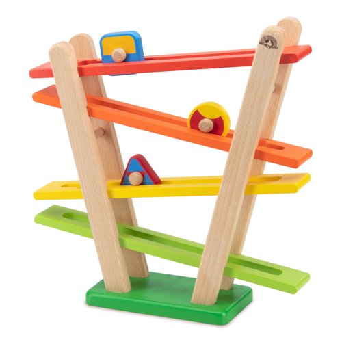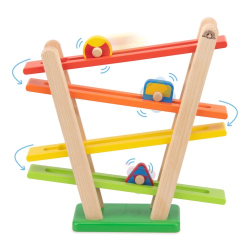 Táto dráha vo farbách dúhy určite poteší každé dieťa! Postavte na dráhu štvorec, trojuholník alebo koliesko a sledujte, ako sa kotúľajú dole po dráhe a ako sa pri ich rýchlom pohybe vzory mihotajú pred očami. Hlavné vlastnosti: kvalitné spracovanie rozvíja sústredenie, zručnosť a jemnú motoriku