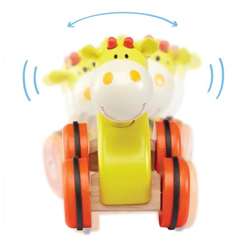Prežeňte veselú žirafu na kolieskach. Naklápaním vozítka sa natáča jeho kolieska a určuje sa tým smer jazdy. Kolieska sú vybavené gumovými krúžkami, ktoré zaisťujú klutivovaný a tichý chod na všetkých druhoch povrchov. Pestrými farbami ľahko zaujme a prostredníctvom nich deti môžu rozvíjať koordináciu pohybov a motoriku. Hlavné vlastnosti: naklápaním zatáča kultivovaný, tichý chododolné prevedenie z masívneho dreva príjemné oblé tvary stimulujúce hmat vycibrená farebnosť a povrchová úprava