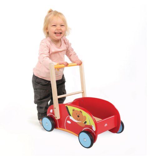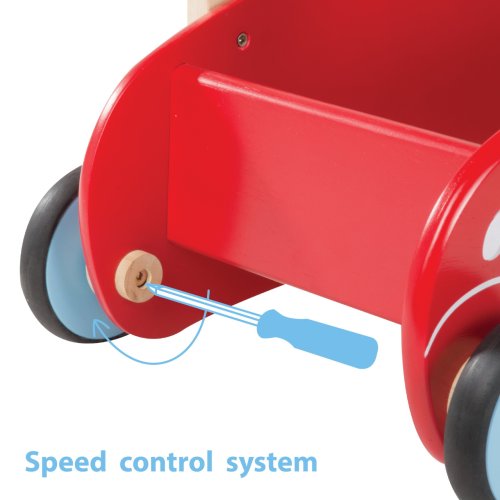 Toto žiarivo červené chodítko s motívom zajačika bude asistovať pri prvých krôčikoch dieťaťa. Má unikátny systém, ktorý ovláda rýchlosť, nedovolí deťom ísť/ísť veľmi rýchlo, aby neprišli k úrazu. Rýchlosť je nastaviteľná podľa možností každého dieťaťa. V úložnom priestore si deti môžu voziť svoje obľúbené hračky. Kolesá sú opatrené gumovým povrchom, ktorý zaručuje tichý chod. Chodítko sa vyznačuje robustnou, odolnou konštrukciou. Hlavné vlastnosti: úložný priestornastaviteľná rýchlosť tichý chodrobustné drevené prevedenie
