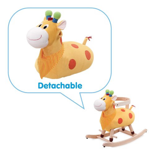 Táto mäkká hojdačka nie je obyčajná. Je to plyšová žirafa s drevenou konštrukciou. Má madlá, opierky na nohy a tiež ochrannú opierku, čo je vhodné pre menšie deti. Až vaše deti povyrastú a budú si na hojdačke istejšie, môžete túto opierku na chrbát odstrániť. Hlavné vlastnosti Drevená konštrukcia, plyšové teloVhodná pre menšie aj väčšie detiŽirafu možno od konštrukcie hojdačky oddeliťRůžky žirafy vydávajú zvuk