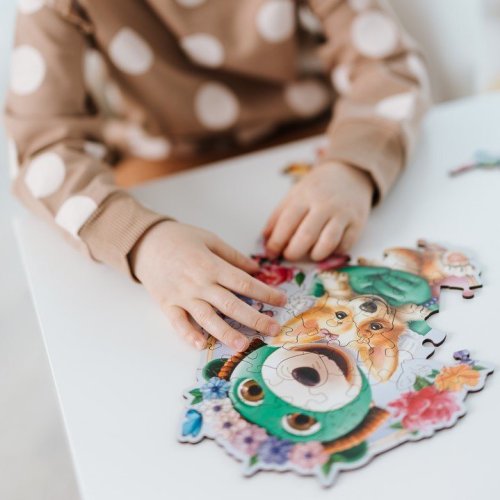 vysoká kvalita a precízne spracovanie laserom 10 unikátne tvarovaných dielikov ostatné dieliky v nepravidelných tvaroch puzzle je obojstranné - z jednej strany obrázok, z druhej strany vzor ekologické balenie - úplne bez plastových obalov