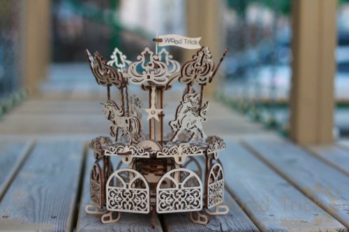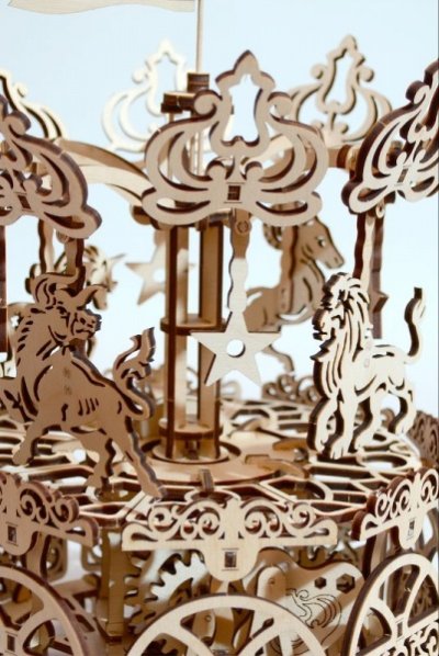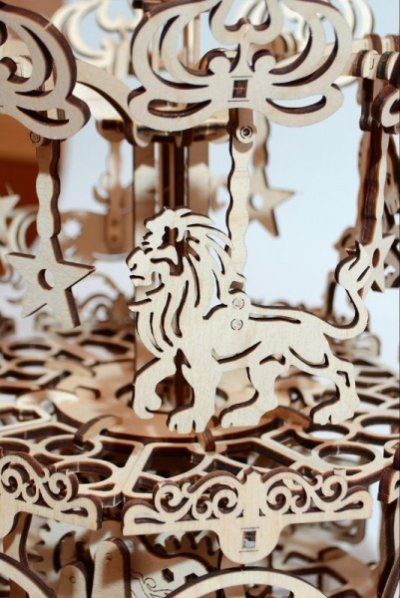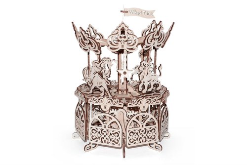 Stavebnica klasického kolotoča z preglejky. Skladačka je dodávaná v nezloženom stave, balená v krabici. Vybavené detailným návodom na zostavenie. Hlavné vlastnosti:197 precízne vyrezaných dielikovstredná obtiažnosť zostavenia