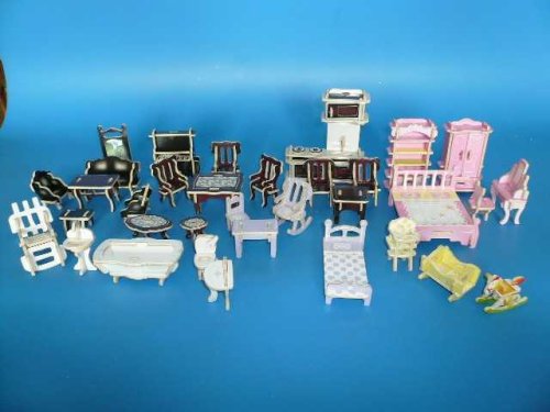 Tieto drevené hračky sú medzi deťmi, ale aj dospelými veľmi obľúbené. Nie sú určené iba na vystavenie na polici, ale pretože sú ich diely múdro spojené, môžu byť použité ako rovnocenné drevené hračky na každodenné hranie. Sú vyrobené z 3 alebo 5 mm hrubej kvalitnej preglejky a sú dodávané v nezloženom stave, balené vo fólii. Jednotlivé diely z drevenej preglejky jednoducho vytlačíte a podľa priloženého návodu skladáte krásne plnohodnotné drevené hračky. Deťom sa tak rozvíja ich myslenie, jemná motorika a predstavivosť. Drevené 3D Puzzle nemusíte lepiť lepidlom, potom ich je možné kedykoľvek rozložiť a znovu zložiť. Odporúčame si ponechať návod na stavbu. Prírodné drevené 3D puzzle si môžu deti aj samé vyfarbiť podľa svojej fantázie. Farebné drevené 3D puzzle sú opatrené kvalitnou potlačou. Sú určené deťom od 3 rokov a spĺňajú všetky normy EÚ. Rozmery zložených výrobkov cca: stolček so zrkadlom: 4,6x2,6x7 cmstôl: 3,9x3,4x3,6 cmstoličky: 3,6x2,5x5,3 cmkuchynská linka: 10x3,5x12,3 cmgauč: 7,3x3,5x : Nie je vhodné pre deti do 3 rokov, pretože obsahuje malé súčasti – hrozí nebezpečenstvo udusenia. Baliaci materiál nie je hračka. Hlavné vlastnosti: farebné drevené 3D puzzle kvalitná potlač rozvíja jemnú motoriku a predstavivostvhodné od 3 rokov jednoduchá obtiažnosť