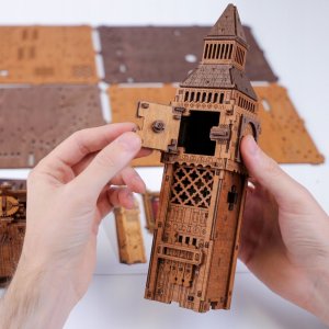 3D Puzzle zo série Escape - zoznámte sa s dreveným 3D modelom, ktorý kombinuje kúzlo slávnej londýnskej veže s hodinami s jedinečným mechanizmom skladačky. Nie je to len krásna dekorácia, ale aj fascinujúca logická zábava, ktorá vás zabaví na celé hodiny.