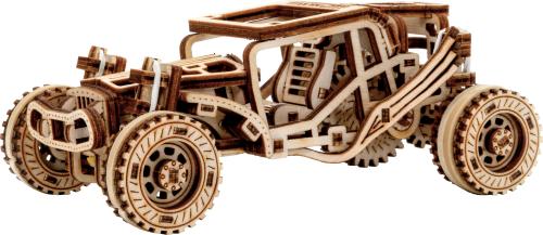 Športové vozidlá si podmanili srdcia milovníkov automobilov už v minulom storočí. Keď uvidíte tento drevený miniatúrny model v pohybe, poviete si ''WOW''. Bugina má nezávislé zavesenie kolies, zotrvačníkový mechanizmus a vratné kolesá. Špeciálne pogumované kolesá a úžasné krídla vyzerajú prirodzene ako bezchybná kópia skutočnej Buggy. Tento model v sebe spája dokonalý design a zložité funkcie. Model má niekoľko detailov skutočného automobilu: - nezávislé zavesenie kolies, - predné otočné kolesá, - zotvačníkový mechanizmus, - vratné pogumované kolesá. 3D puzzle WOODEN CITY Buggy je skvelým darčekom pre každého milovníka športových vozidiel. Obtiažnosť: 3 z 5 (podľa rozdelenia Wooden City) Orientačná doba na zloženie: 2 hodiny Mierka: 1:32 Drevené 3D puzzle WOODEN CITY sú detailne prepracované funkčné mechanické modely, ktoré sa skladajú bez lepidla alebo náradia. Sú vyrobené z ekologických drevených materiálov - kvalitné brezové preglejky. S mechanickými drevenými puzzle WOODEN CITY zažijete hodiny zábavy pri skladaní a spoznáte prevody, gumičkové motory, ozubené kolieska a ďalšie súčiastky z bezprostrednej blízkosti.