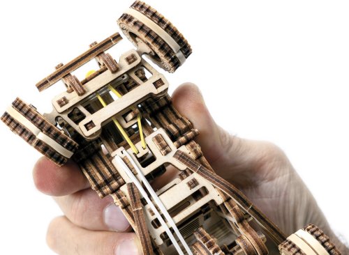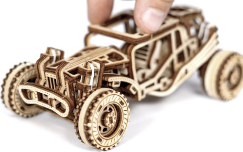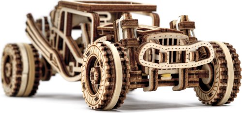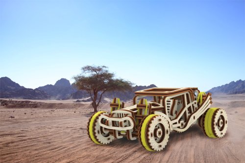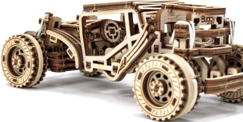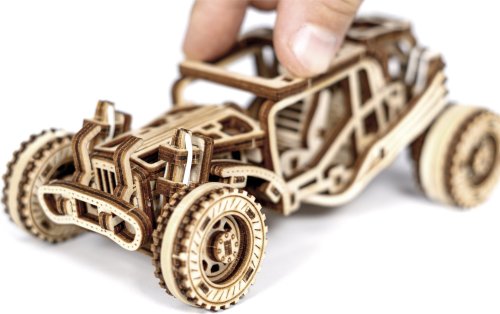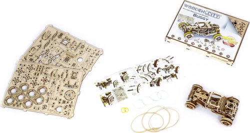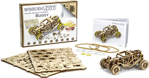 Športové vozidlá si podmanili srdcia milovníkov automobilov už v minulom storočí. Keď uvidíte tento drevený miniatúrny model v pohybe, poviete si ''WOW''. Bugina má nezávislé zavesenie kolies, zotrvačníkový mechanizmus a vratné kolesá. Špeciálne pogumované kolesá a úžasné krídla vyzerajú prirodzene ako bezchybná kópia skutočnej Buggy. Tento model v sebe spája dokonalý design a zložité funkcie. Model má niekoľko detailov skutočného automobilu: - nezávislé zavesenie kolies, - predné otočné kolesá, - zotvačníkový mechanizmus, - vratné pogumované kolesá. 3D puzzle WOODEN CITY Buggy je skvelým darčekom pre každého milovníka športových vozidiel. Obtiažnosť: 3 z 5 (podľa rozdelenia Wooden City) Orientačná doba na zloženie: 2 hodiny Mierka: 1:32 Drevené 3D puzzle WOODEN CITY sú detailne prepracované funkčné mechanické modely, ktoré sa skladajú bez lepidla alebo náradia. Sú vyrobené z ekologických drevených materiálov - kvalitné brezové preglejky. S mechanickými drevenými puzzle WOODEN CITY zažijete hodiny zábavy pri skladaní a spoznáte prevody, gumičkové motory, ozubené kolieska a ďalšie súčiastky z bezprostrednej blízkosti.