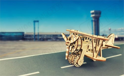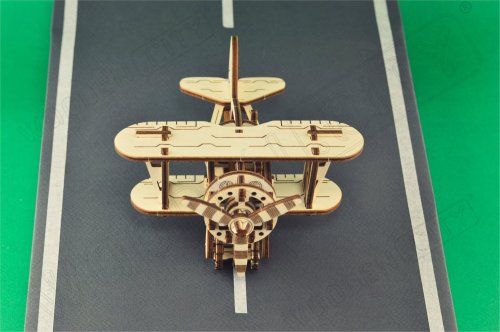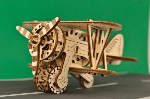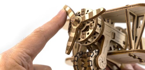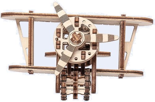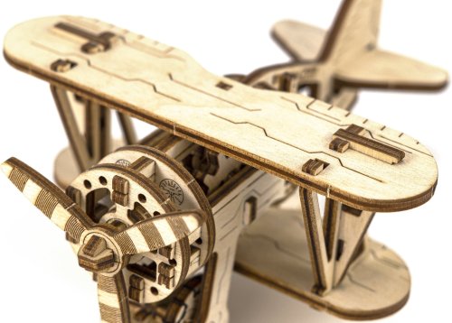 Divoká modrá obloha volá! Drevená mechanická stavebnica modelu Dvojplošníka má jedinečný design a prekvapivé detaily.