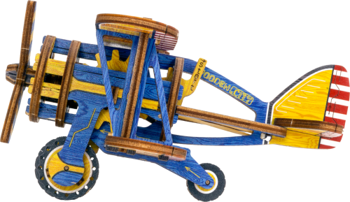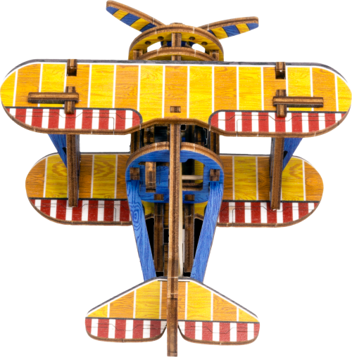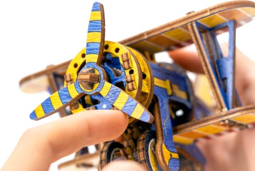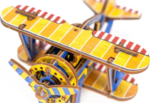 Drevená mechanická stavebnica skvelého dvojplošníka na vás čaká! Vďaka jedinečnému dizajnu a prekvapivým detailom tohto modelu bude vaše trávenie času plné zábavy a skvelých emócií. Vlastnosti modelu: - vďaka zotrvačnému mechanizmu môže prejsť až 1 meter, - motor poháňaný gumičkovým remeňom, - navíjacia vrtuľa, - výrazné farebné prvky vďaka vysoko presnej UV tlači, - drevená krabička slúži ako podstavec, - zberateľská edícia. 3D puzzle WOODEN CITY Biplane bude najlepším darčekom pre každého milovníka letectva. Obtiažnosť: 3 z 5 (podľa rozdelenia Wooden City) Orientačná doba na zloženie: 3 hodiny Mierka: 1:60 Drevené 3D puzzle WOODEN CITY sú detailne prepracované funkčné mechanické modely, ktoré sa skladajú bez lepidla alebo náradia. Sú vyrobené z ekologických drevených materiálov - kvalitné brezové preglejky. S mechanickými drevenými puzzle WOODEN CITY zažijete hodiny zábavy pri skladaní a spoznáte prevody, gumičkové motory, ozubené kolieska a ďalšie súčiastky z bezprostrednej blízkosti.