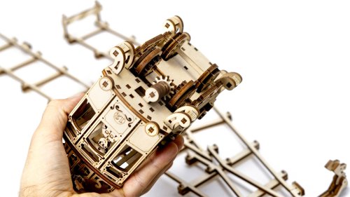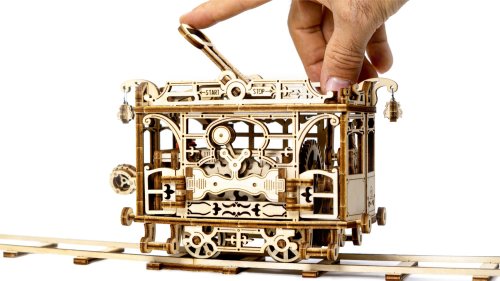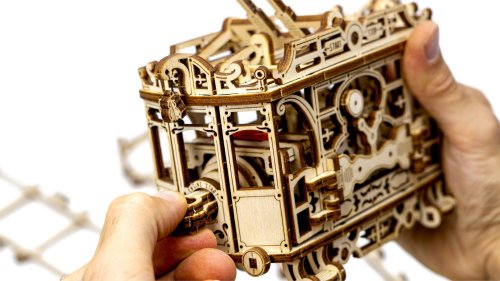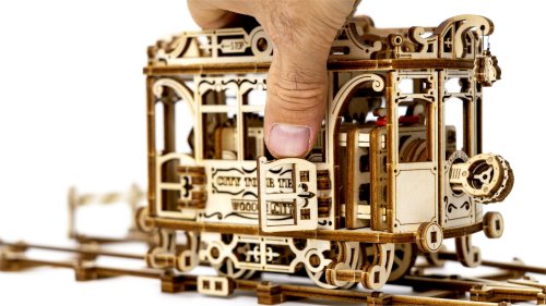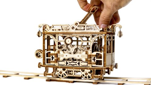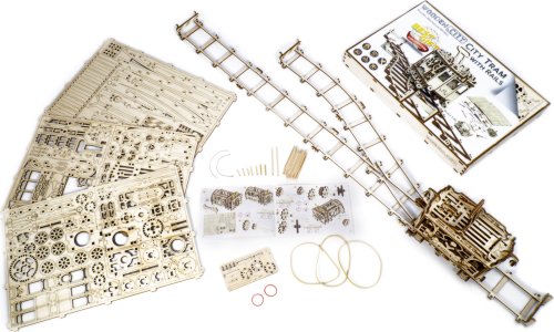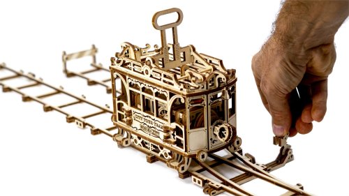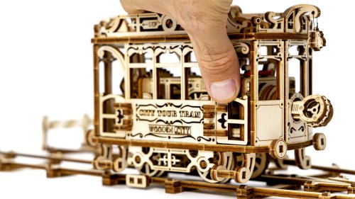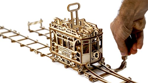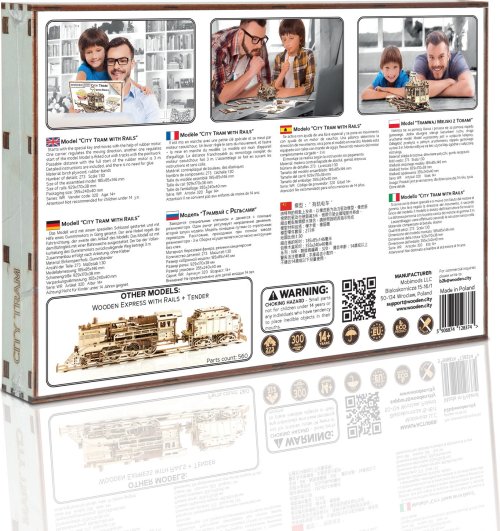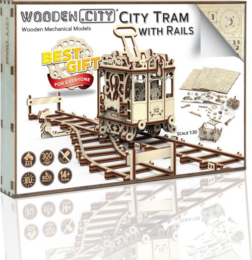 S radosťou vám predstavujeme našu novú mechanickú drevenú sadu - Mestskú električku s koľajami. Vyzerá ako skutočná električka, ktorá je na ceste, aby vám ukázala všetky zvláštne miesta, ktoré chcete vidieť vo svojom obľúbenom meste. Zostavte model s kamarátmi alebo deťmi, postavte ho na internáty a užite si chvíle zábavy a šťastia. - štartuje so špeciálnym kľúčom - pohybuje sa pomocou gumičkového motora - regulácia smeru pohybu a rozjazdu modelu - prejdená vzdialenosť pri plnom spustení gumičkového motora je 3 m - jazdí dopredu a dozadu 3D puzzle WOODEN CITY City sveta na koľajniciach. Orientačná doba na zloženie: 5 hodín Mierka: 1:30 Rozmery modelu: 18,5 x 8,5 x 14,6 cm Rozmery koľajníc: 92,9 x 17 x 3,8 cm Drevené 3D puzzle WOODEN CITY sú detailne prepracované funkčné mechanické modely, ktoré sa skladajú bez lepidla alebo náradia. Sú vyrobené z ekologických drevených materiálov - kvalitné brezové preglejky. S mechanickými drevenými puzzle WOODEN CITY zažijete hodiny zábavy pri skladaní a spoznáte prevody, gumičkové motory, ozubené kolieska a ďalšie súčiastky z bezprostrednej blízkosti.