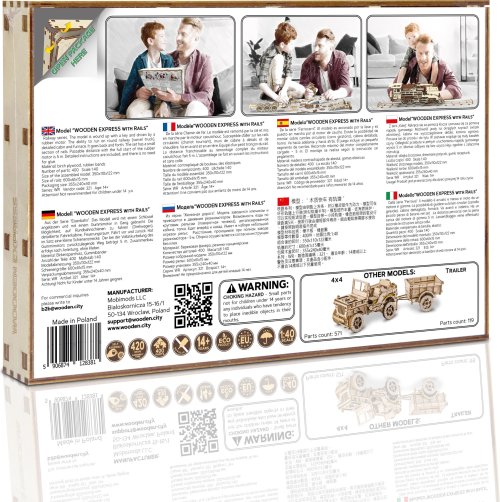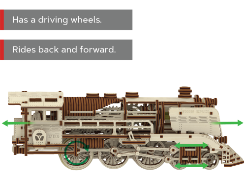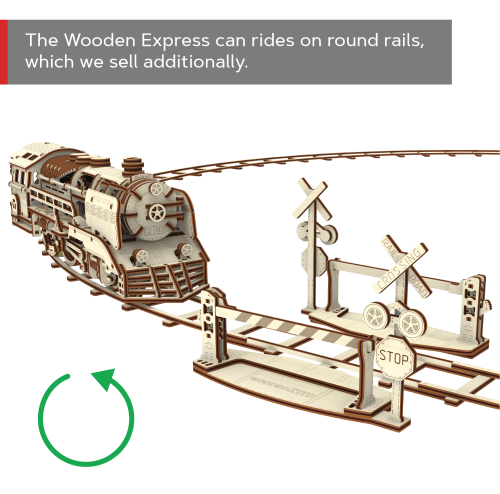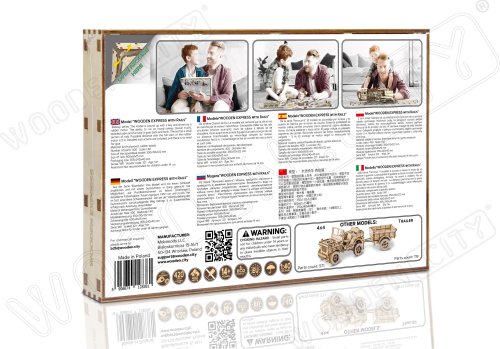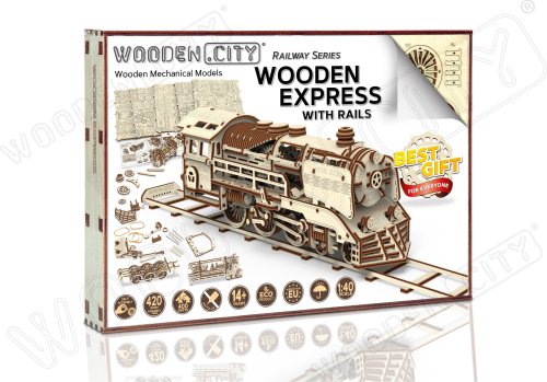 3D puzzle WOODEN CITY Wooden Express je neobvyklým darčekom pre vašich blízkych a milovníkov sveta na koľajniciach. Obtiažnosť: 4 z 5 (podľa rozdelenia Wooden City) Orientačná doba na zloženie: 7 hodín Mierka: 1:40 Drevené 3D puzzle WOODEN CITY sú detailne prepracované funkčné mechanické modely, ktoré sa skladajú bez lepidla alebo náradia. Sú vyrobené z ekologických drevených materiálov - kvalitné brezové preglejky. S mechanickými drevenými puzzle WOODEN CITY zažijete hodiny zábavy pri skladaní a spoznáte prevody, gumičkové motory, ozubené kolieska a ďalšie súčiastky z bezprostrednej blízkosti.