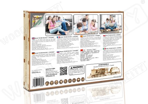 3D puzzle WOODEN CITY Round Rail + Crossing je neobvyklým darčekom pre vašich blízkych a milovníkov sveta na koľajniciach. Obtiažnosť: 4 z 5 (podľa rozdelenia Wooden City) Orientačná doba na zloženie: 3 hodiny Mierka: 1:40 Drevené 3D puzzle WOODEN CITY sú detailne prepracované funkčné mechanické modely, ktoré sa skladajú bez lepidla alebo náradia. Sú vyrobené z ekologických drevených materiálov - kvalitné brezové preglejky. S mechanickými drevenými puzzle WOODEN CITY zažijete hodiny zábavy pri skladaní a spoznáte prevody, gumičkové motory, ozubené kolieska a ďalšie súčiastky z bezprostrednej blízkosti.