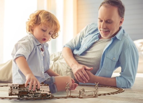 Už ste si zostavili svoj drevený expres? Tak je čas ho naštartovať a vyraziť na cestu po kruhovej železnici s prejazdom. Užite si chvíľu a sledujte, ako expres jazdí. Pomocou prejazdu prepínajte smer pohybu a bavte sa. - Vlak prejde na plné natiahnutie 4,5 m. - Rozmery: 164 x 149 x 11,8 cm.