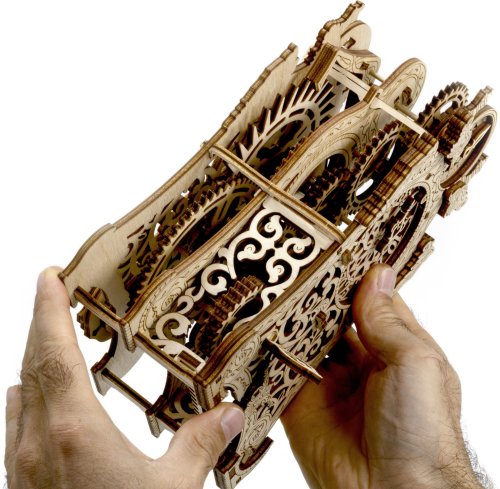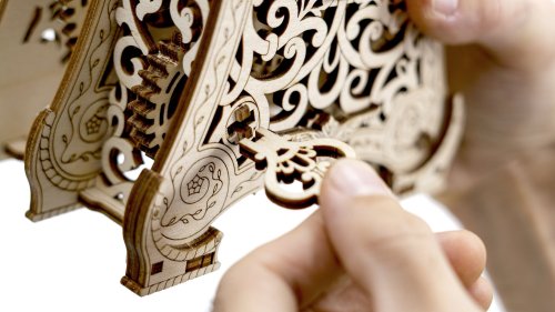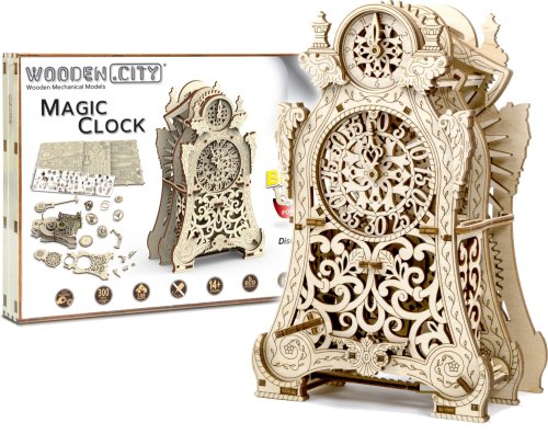 Naše kúzelné hodiny sú rozprávkou, ktorú rozprávate vy. Dva ciferníky, efektné rytiny, otáčajúce sa ozubené kolesá a stály rytmus kyvadla. Staňte sa kúzelníkom s týmto mechanickým 3D modelom od WOODEN CITY. Kúzelné hodiny Vás prenesú vás do sveta Krásky a zvieraťa alebo jej adaptácia Kvietok Šarlatový, a čo si z takýchto príbehov pamätáte? Samozrejme hovoriace hodiny Cogsworth! Model hodín je rozprávka a veda v jednom: ⠀ - hodiny nie sú len 3D puzzle, ale skutočne "žijú", - celý mechanizmus môžete sledovať a študovať jeho prácu, - skladá z dvoch ciferníkov - jedného pre hodiny a druhého pre minúty - hodinového mechanizmu a kyvadlá, - na jedno natiahnutie vydržia fungovať cca 30 minút, - sú rafinované, náladové a zároveň harmonické - budú jedinečnou ozdobou vášho domova. 3D puzzle WOODEN CITY Magic Clock - Kúzelné hodiny s jemne vykonanou drevorezbou sú neobvyklým darčekom pre vašich blízkych. Obtiažnosť: 4 z 5 (podľa rozdelenia Wooden City) Orientačná doba na zloženie: 5 hodín Drevené 3D puzzle WOODEN CITY sú detailne prepracované funkčné mechanické modely, ktoré sa skladajú bez lepidla alebo náradia. Sú vyrobené z ekologických drevených materiálov - kvalitné brezové preglejky. S mechanickými drevenými puzzle WOODEN CITY zažijete hodiny zábavy pri skladaní a spoznáte prevody, gumičkové motory, ozubené kolieska a ďalšie súčiastky z bezprostrednej blízkosti.
