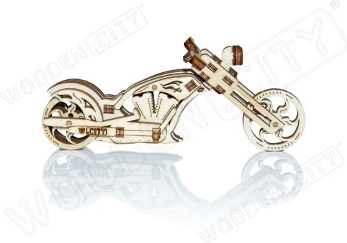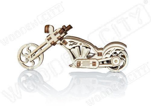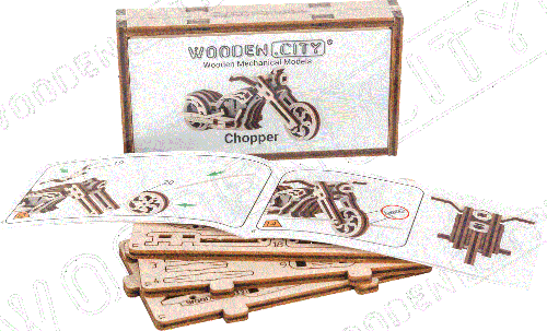 Drevená mechanická stavebnica sady Drobností - Widgets obsahuje mini model motorky, ktorý si môžete len tak vystaviť alebo darovať pre radosť. Vďaka jedinečnému dizajnu a detailom modelov bude vaše skladanie plné zábavy. 3D puzzle WOODEN CITY Widgets Chopper je drobnosťou, ktorá poteší každého milovníka motoriek. Orientačná doba na zloženie: 20 min Drevené 3D puzzle WOODEN CITY sú detailne prepracované funkčné mechanické modely, ktoré sa skladajú bez lepidla alebo náradia. Sú vyrobené z ekologických drevených materiálov - kvalitné brezové preglejky. S mechanickými drevenými puzzle WOODEN CITY zažijete hodiny zábavy pri skladaní a spoznáte prevody, gumičkové motory, ozubené kolieska a ďalšie súčiastky z bezprostrednej blízkosti.