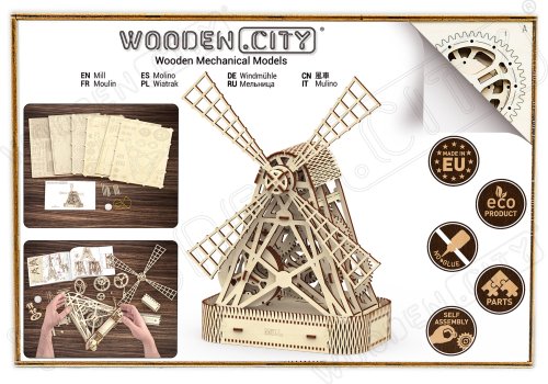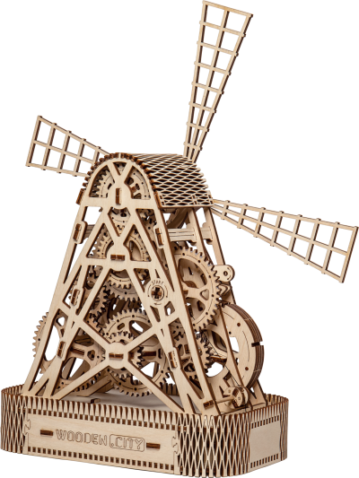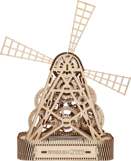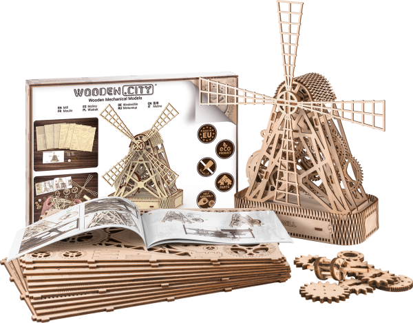 Zelená lúka, vtáky na modrej oblohe a starý mlyn - to sú nevyhnutné súčasti tradičnej európskej krajiny. S veternými mlynmi nebudete bojovať ako Cervantesov Don Quijote. Budete ich stavať! Drevená mechanická stavebnica veterného mlyna s jedinečným dizajnom a prekvapivými detailmi modelu je stvorená pre príjemné chvíle plné zábavy a skvelých emócií.