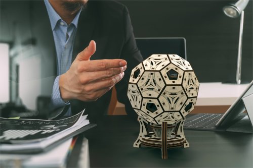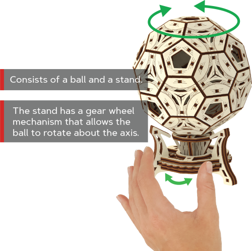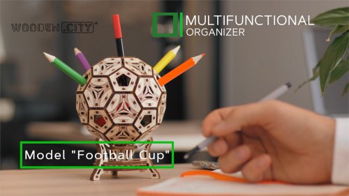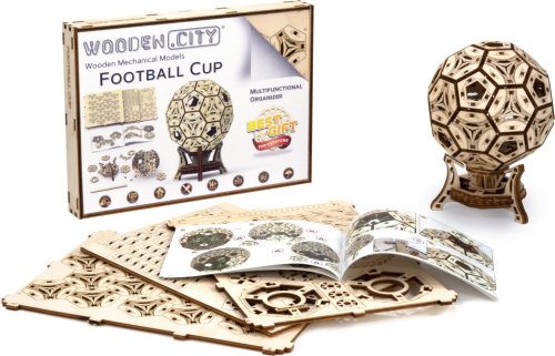 Prečo je byť futbalistom tak cool? Predovšetkým ste vždy v skvelej forme, šport je váš život, ste slávni, máte svalnaté nohy a veľa obdivovateliek. Znie to skvele? Tento multifunkčný 3D organizér je stvorený práve pre vás – úžasný futbalový pohár. - možno použiť pre kancelárske veci - roztočte stojan a sledujte, ako sa lopta otáča - vyberte loptu zo stojana a hrajte sa len tak 3D puzzle WOODEN CITY Footbal Cup je skvelým darčekom pre všetkých futbalových nadšencov a fanúšikov. Obtiažnosť: 3 z 5 (podľa rozdelenia Wooden City) Orientačná doba na zloženie: 2 hodiny Drevené 3D puzzle WOODEN CITY sú detailne prepracované funkčné mechanické modely, ktoré sa skladajú bez lepidla alebo náradia. Sú vyrobené z ekologických drevených materiálov - kvalitné brezové preglejky. S mechanickými drevenými puzzle WOODEN CITY zažijete hodiny zábavy pri skladaní a spoznáte prevody, gumičkové motory, ozubené kolieska a ďalšie súčiastky z bezprostrednej blízkosti.